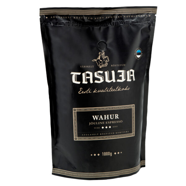 Jõuline espresso. Tasuja sarjast kõige tugevama maitse ja röstiga. Sobib espressomasinasse, mokakannu ja muudesse rõhuga toimivatesse seadmetesse. Maitselt meenutab Tasuja Wahur tumedat šokolaadi ja röstitud maapähkleid. Madal happesus. Soovitame piimaga kohvijookidesse.